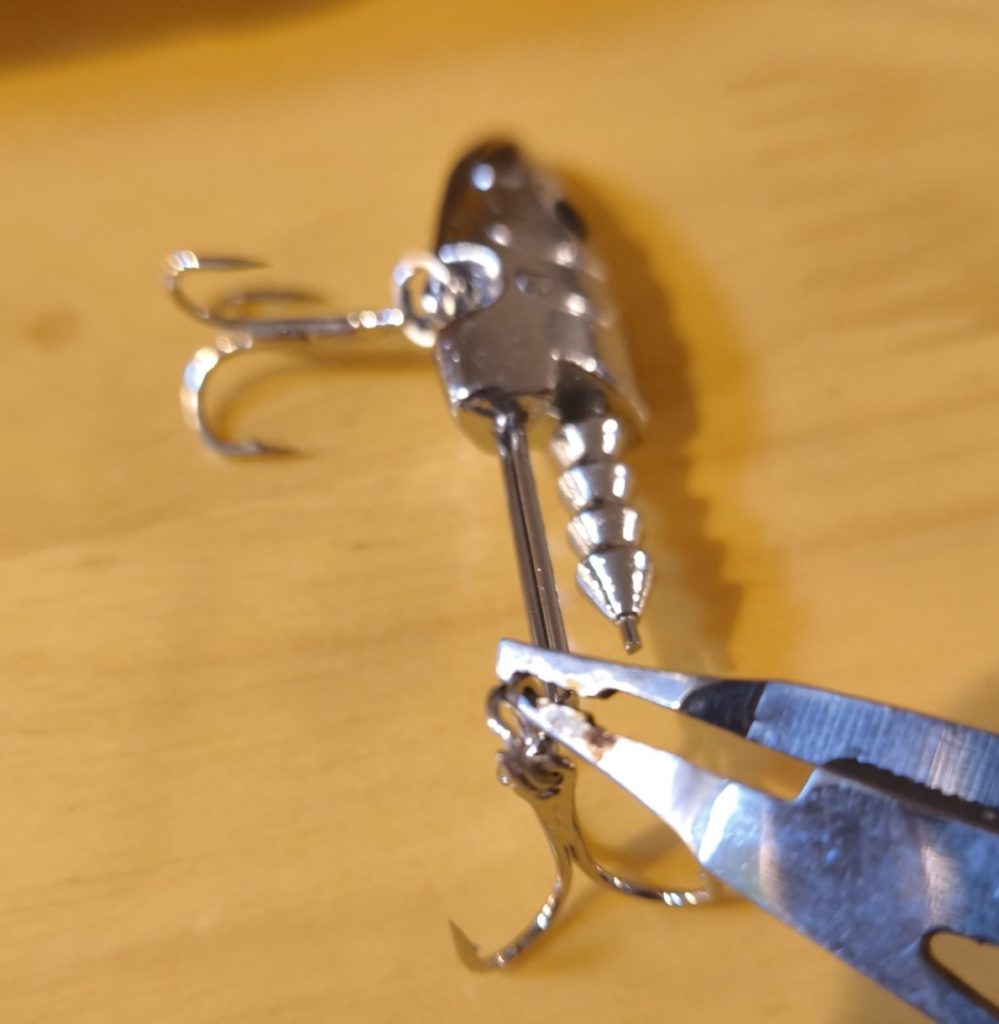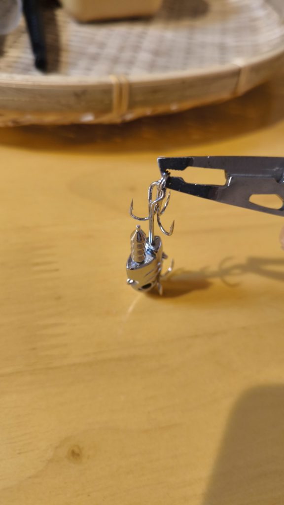 ちなみに200円のプライヤーだとダイソーVJのフックはスプリットリングが小さくて交換できません。