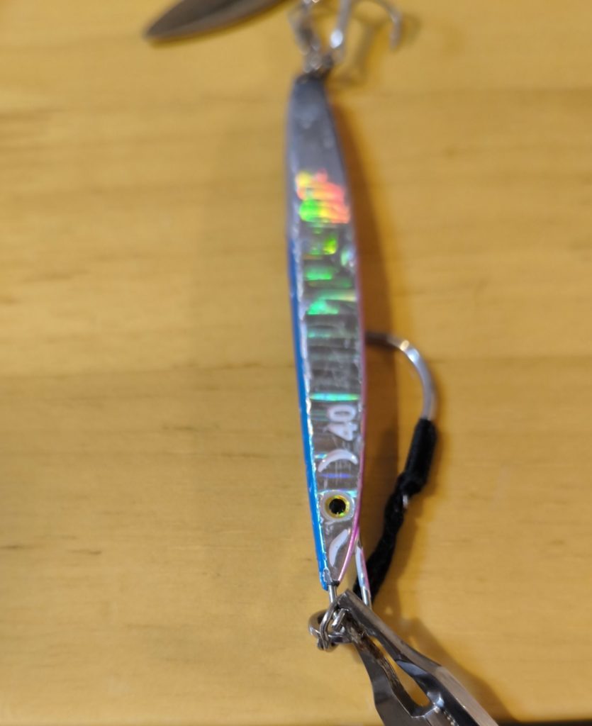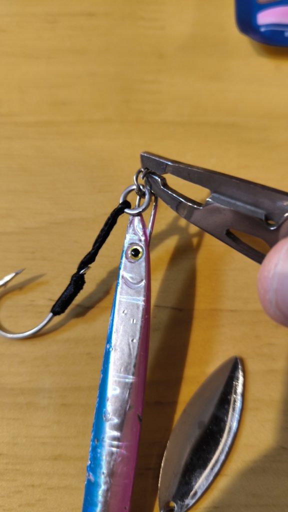 先端が太めで、大型メタルジグ(40gなど)のスプリットリング交換にちょうどいい。