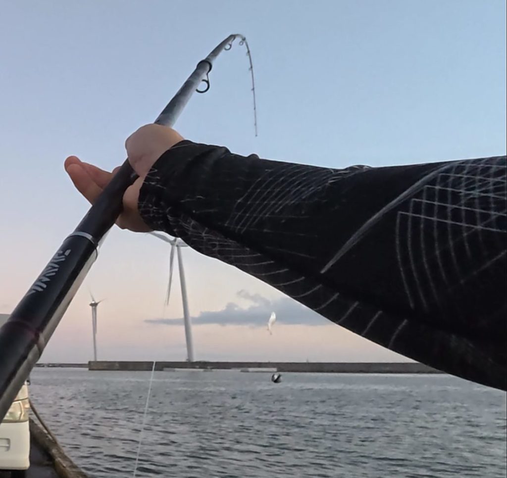 周囲を見ても、釣れてる様子はゼロ。重い磯竿に筋肉が悲鳴を上げてくる。