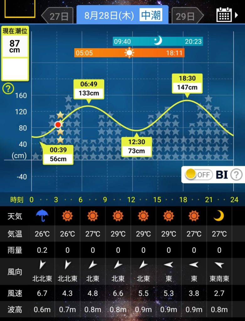 - 風:北東5m(ちょっとキツい…)