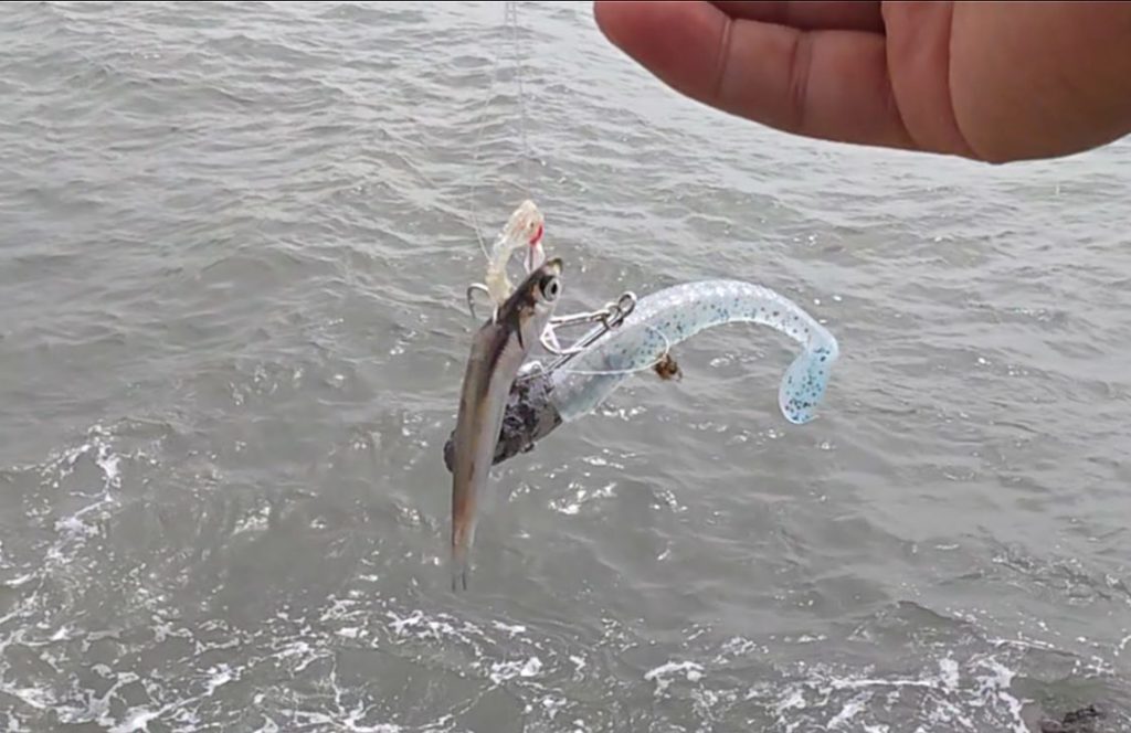 ゴミでも引っ掛けたかと思ったら、なんと カタクチイワシ?の子供!