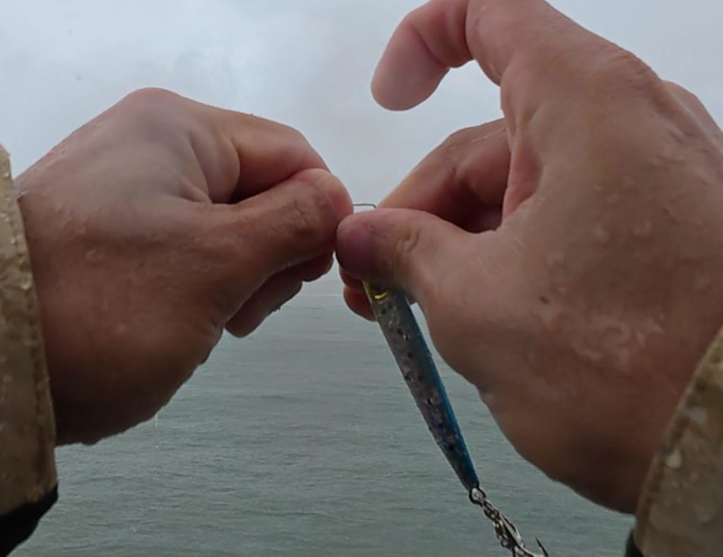 ルアーを メタルジグ28g・ブルピンカラーにチェンジ。サイズも色も、さっきのカタクチイワシにそっくり!