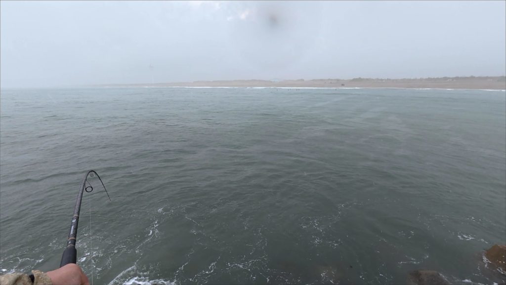 海は少し荒れ気味。個人的には「凪=釣れない」イメージがあるので、このくらいの荒れはむしろ歓迎です。