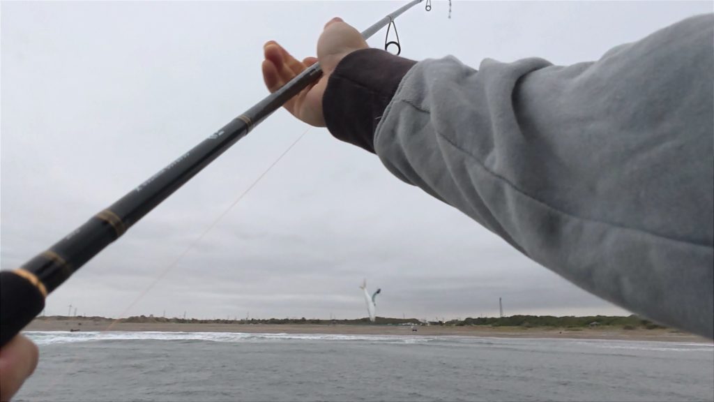 ドラグがジリジリ出て、竿がブチ曲がる!