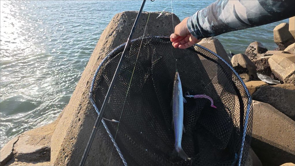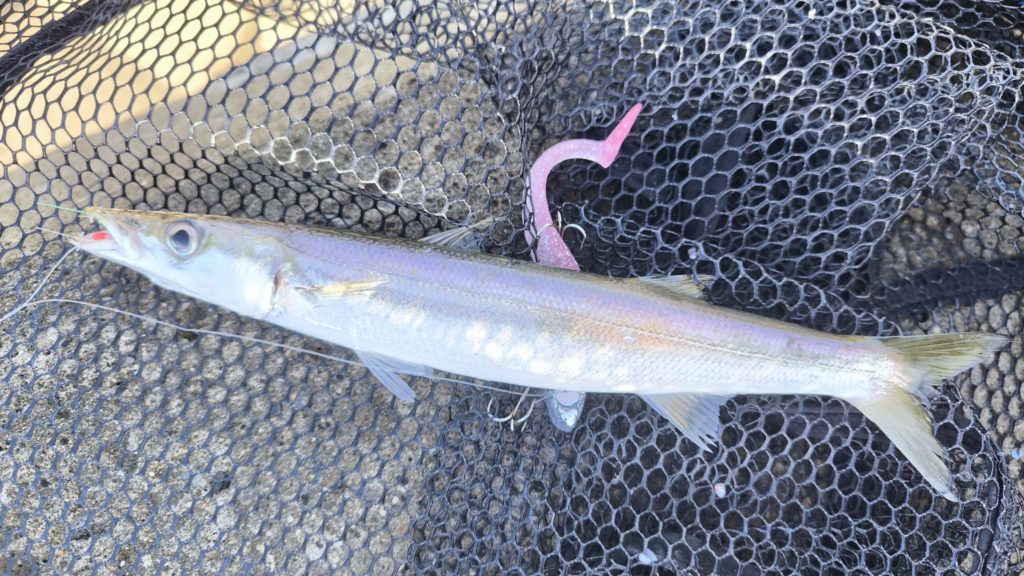 しばらくすると、小さなアタリ。釣れたのは小カマス!