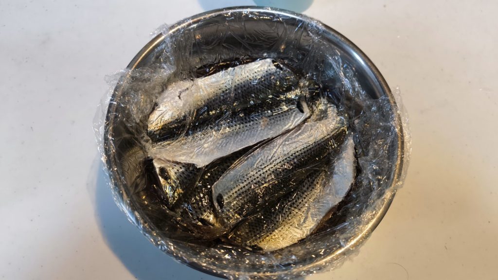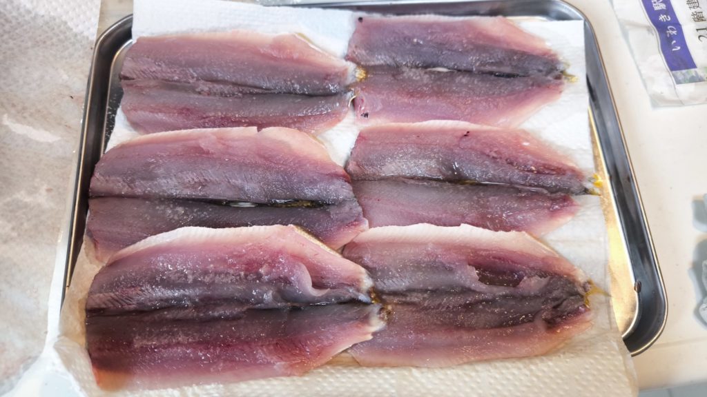 - キッチンペーパーを敷いて魚を並べる