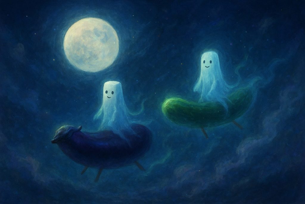 で、その時に乗ってくるのが――ナスとキュウリの精霊馬(しょうりょううま)。